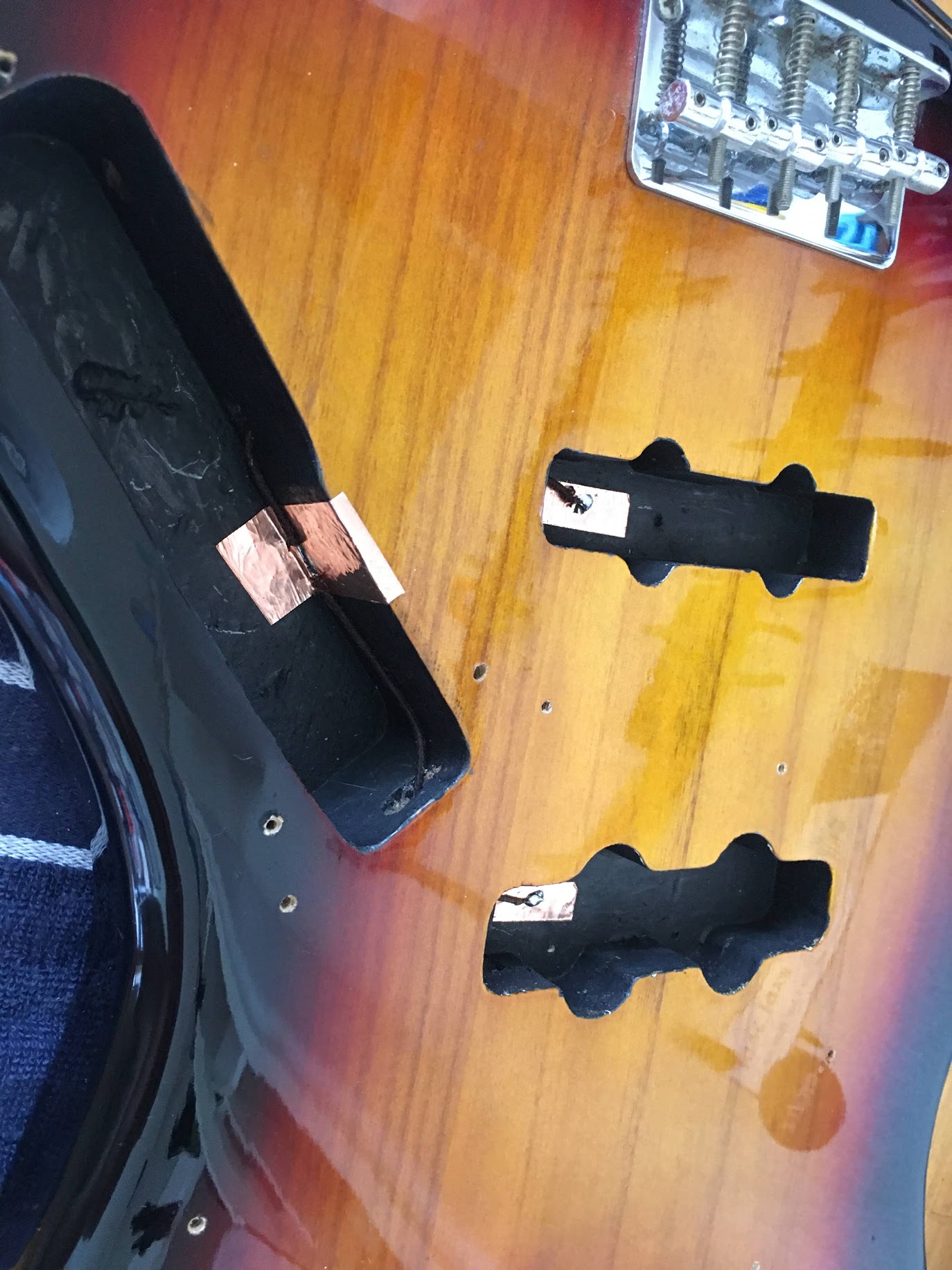 FREEDOM CUSTOM GUITAR RESEARCH・Noisehellを使用。 入門モデルやミドルクラスの楽器では導電処理されていないものも多いです。 シールドタイプの導電塗料でノイズ対策をしてあります。 手間も塗料の材料費用も高いのでミドルクラスのギターでもこうした丁寧なノイズ対策処理はされていません。 ※他のケーブルやアンプなどの影響もありますので必ずノイズがなくなるわけではありません。 |