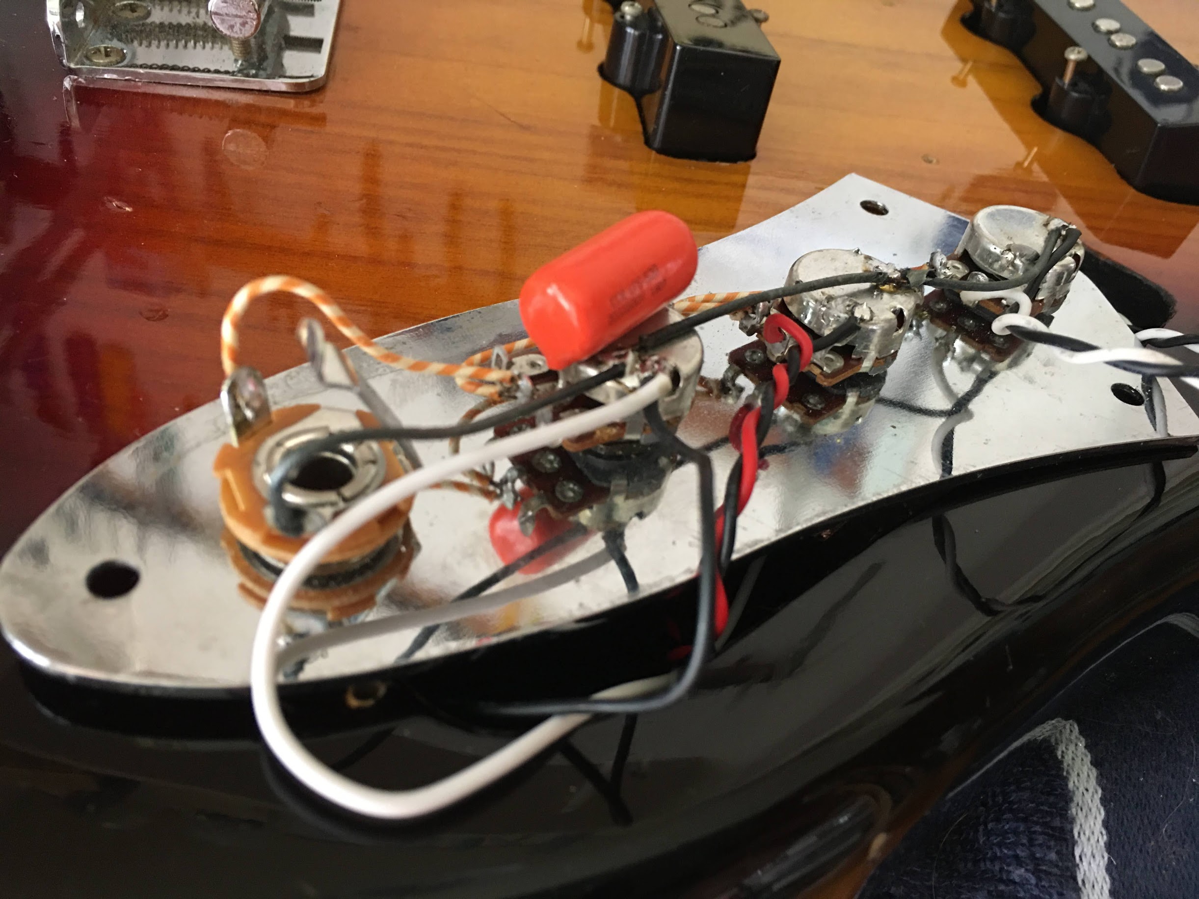 内部配線:1960年代のWesternElectricのビンテージワイヤーを使用 コンデンサー:オレンジドロップ(新品) ジャック:SwitchCraftに交換(新品) ポットは交換していません こちらの改造は専門店に出すと相当な金額になるはずです… |